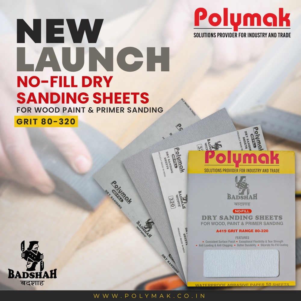 No-Fill Dry Sanding Sheets for Wood, Paint & Primer sanding. Prodly Made in India line.