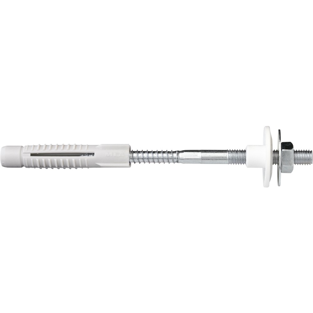 The Vanity Installation Set WT is specifically designed for securely fastening wash basins to a wide range of base materials. The set includes two multi-purpose plugs MZ, which have proven their reliability in countless installations. These plugs expand in four directions in solid materials and form secure knots in perforated bricks or behind drywall walls. Made from high-quality polyethylene, the plugs ensure permanent elasticity and optimal knotting behavior when screwing in the hanger bolts with M10 connecting threads and TX drive.